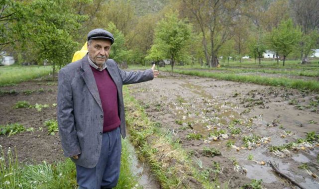 Sabah bahçelerini sular altında görünce yetkililerden yardım talep ettiklerini fakat olumsuz yanıt aldıklarını belirten İzzet Ünal, "DSİ'ye dedik ki haziran ayından sonra yapılsın burası. Buranın yağmur yağdığı zaman, suyun ne zaman geleceği meçhul, biz arazimizi ekiyoruz. Dediler ki hiç mahsuru yok, biz gereken önlemi alıyoruz. Çalışma başladı, biz bahçelerimizi ektikten sonra dereleri oydular, dere ıslahı vardı önceden, dere ıslahını söktüler, derenin ortasına aldılar. Suyun yönü kayboldu, su arttıkça bahçelerimizden başladı akmaya. Müteahhite söyledik, su çoğaldığı zaman buraları söker götürür. Bizim bu bahçeler dedelerimizden kaldı bize. Bu emeği 50 senedir, 100 senedir biz burada, kendimizi bakıyoruz, göçebe olmuyoruz. Siz bizi burada dere ıslahıyla yardım edecek yerde bizi göçebe ediyorsunuz. Bizim elimizde bulunan tohumumuz mahvoldu, gitti. Ben şu anda şu bahçeye 200 kilo patates ektim. 50 kilo fasulye ektim. Patatesin kilosu tarımda 40 lira. Yani bunu göze almak lazım. Fasulyenin kilosu bugün 400 lira. Daha tohum yok. Elimizdeki tohum gitti. Devletin yetkililerden yardım bekliyoruz. Ama buranın da önleminin alınması gerekiyor. Sorumsuz olarak bıraktı müteahhit gitti. Sabahleyin yapacağını güya yapmış. Şu anda ortada taşlar yığılı. Sabah DSİ'ye gittik bizim makinemiz yok dediler. Makineniz yok diye bu bahçeleri suya mı vermeniz lazım. Bayburt'ta makinemiz var gelecek dediler, su dağıldı gidiyor şimdi" diye konuştu.