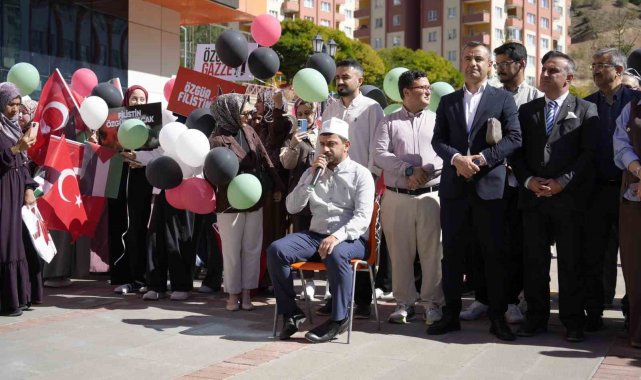 Gümüşhane'de Gazze için balonlar gökyüzüne bırakıldı
