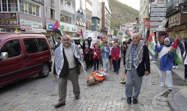 Gümüşhane'de 7 Ekim Aksa Tufanı Operasyonu'nun yıl dönümünde Gazze'ye destek için yürüyüş düzenlendi.