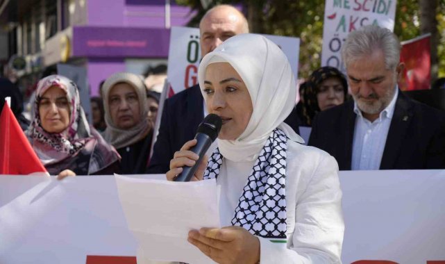 Gazze'de yaşanan zulme dikkat çeken AK Parti Gümüşhane Kadın Kolları Başkanı Duygu Sena Kurt, "Biz bugün bütün kimliklerimizden sıyrılarak sadece kadın kimliğimizle buradayız. Çünkü bu mesele ne dünyadaki rollerimizle, ne taşıdığımız unvanlarla, ne de sahip olduklarımızla ilgilidir bu mesele insanlık meselesidir. Bugün Türkiye'den tüm dünyaya tek bir şey söylüyoruz. Barış kadınla mümkündür. Slogan atmıyoruz vicdanlarımızla haykırıyoruz. Çünkü bazı sessizlikler vardır ki, arşı yere indirir. Ve bizim sessizliğimiz, Gazze'nin en gür çığlığı olacaktır" dedi.