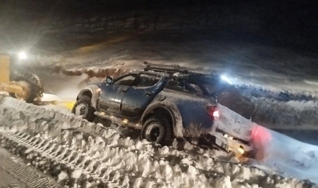 Gümüşhane'de kar yağışı ve tipi nedeniyle köy yolunda mahsur kalan vatandaşlar, İl Özel İdaresi ekiplerinin müdahalesiyle kurtarıldı.