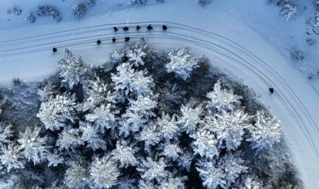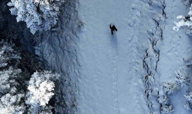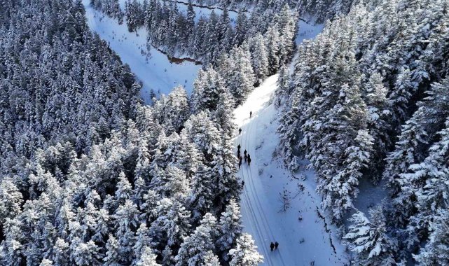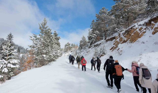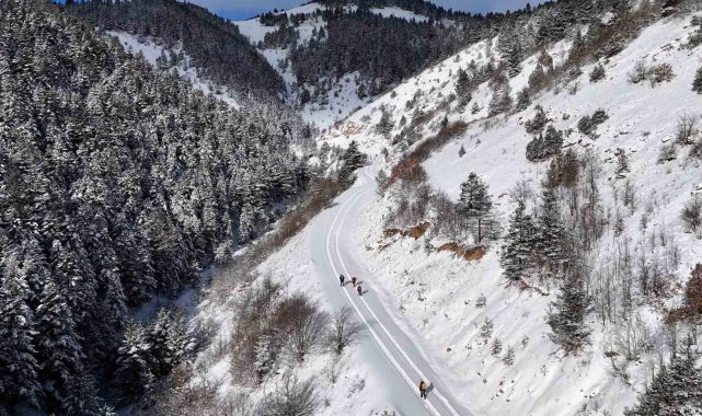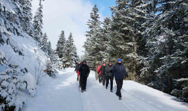 Karla kaplı çam ve göknar ormanları arasında unutulmaz bir gün geçiren sporcular yürüyüş boyunca yer yer 40 santimetreye ulaşan taze kar kütlesinin üzerinde yürüdü.