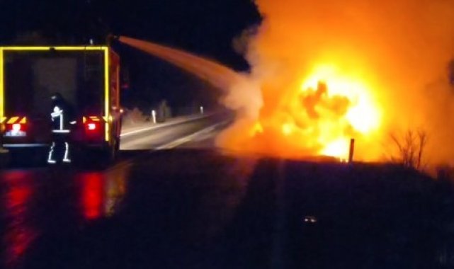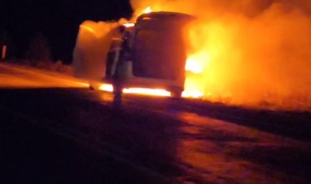 Gümüşhane'de seyir halindeki araç alev topuna döndü