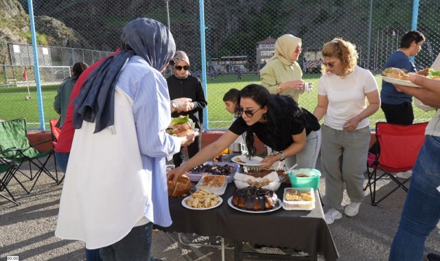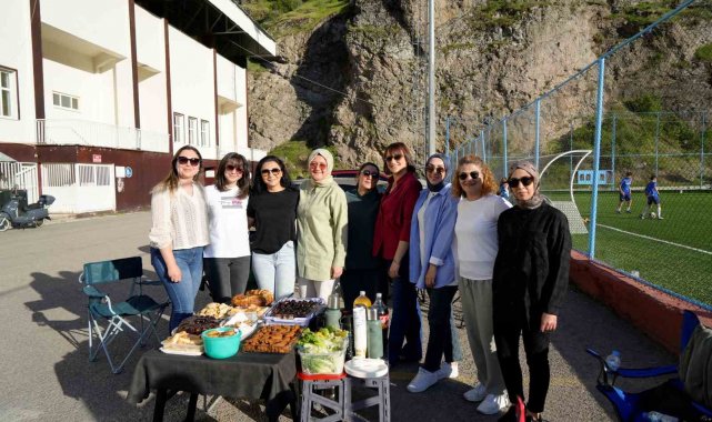 Gümüşhane'de futbol oynayan minik sporcuların anneleri, her maçta çocuklarını yalnız bırakmayarak tribünlerin neşe kaynağı olurken, yaptıkları pasta ve böreklerle tribünlerde adeta gün yapıyorlar.