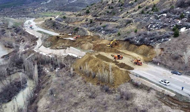 Gümüşhane-Erzincan karayolundaki heyelan bölgesinde çalışmalar sürüyor