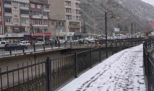Gümüşhane kent merkezine mevsimin ilk karı yağdı