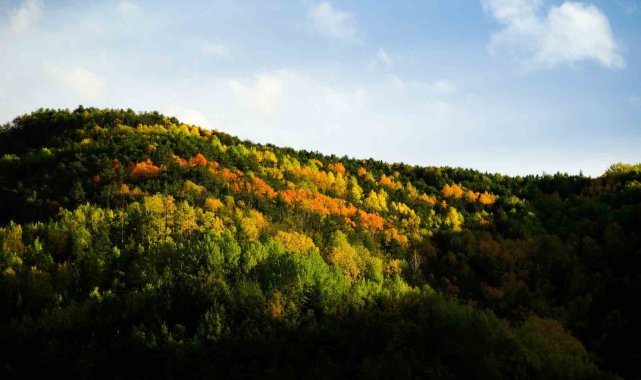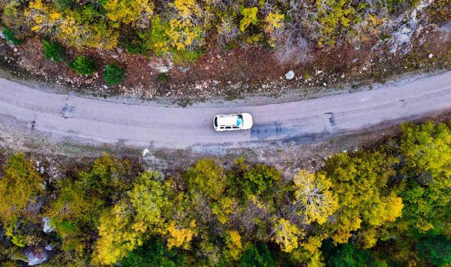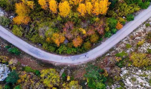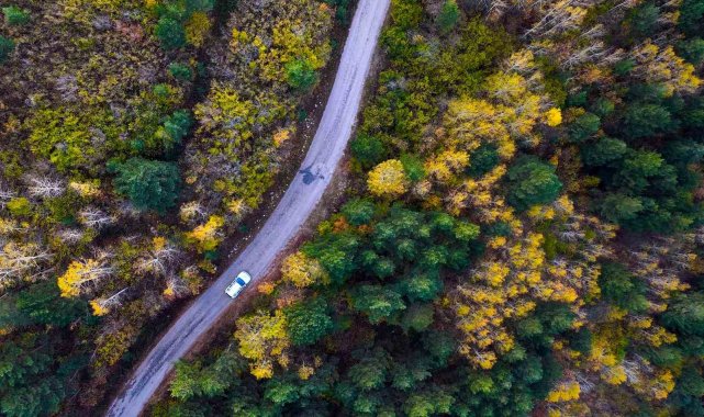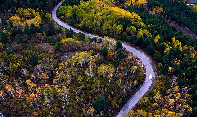Yol boyunca uzanan titrek kavak ağaçlarının altın sarısı yaprakları, her dem yeşil kalan sarı çam ormanları ve yer yer kendini gösteren meşe ağaçlarının kahverengi tonları, doğanın ne denli zengin bir palete sahip olduğunu gözler önüne seriyor.