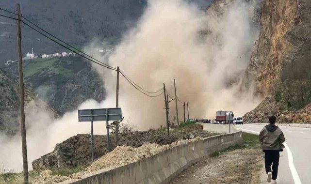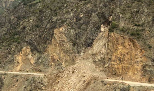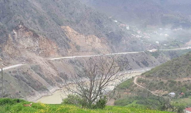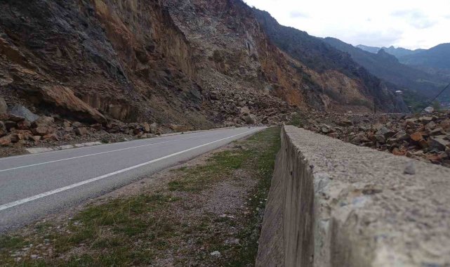 Edinilen bilgiye göre, vatandaşların dün yamaçtaki yarıkları görerek ihbarda bulunmasının ardından bugün bölgede gerçekleşen heyelan karayolunu ulaşıma kapattı.