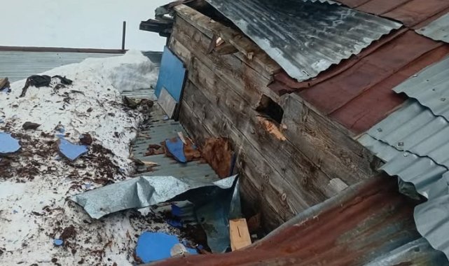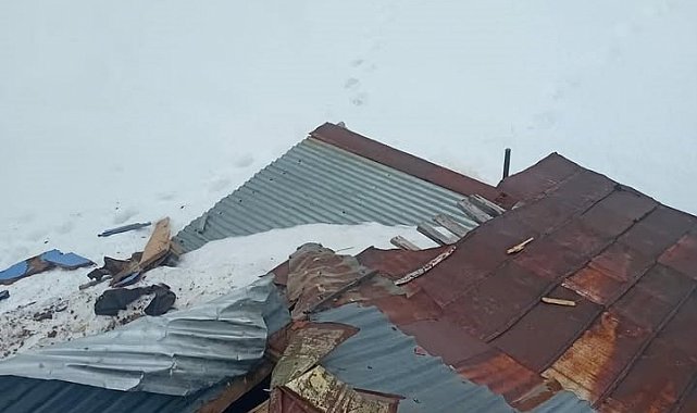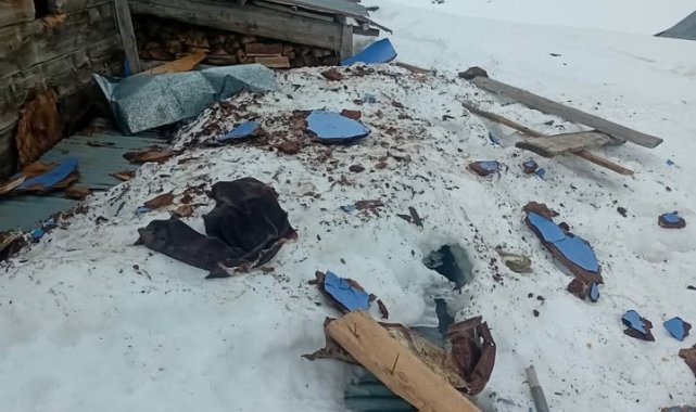 Kış mevsiminin gelmesiyle birlikte ıssızlaşan yaylada, Bahri Yolcu'ya ait taş ve ahşap karışımı evin çatısı, aç kaldığı tahmin edilen bir ayının hedefi oldu.