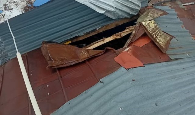 Evin sac kaplama çatısını fiziksel gücüyle delerek içeri giren yabani hayvan, evin içinde adeta savaş alanı manzarası oluşturdu.