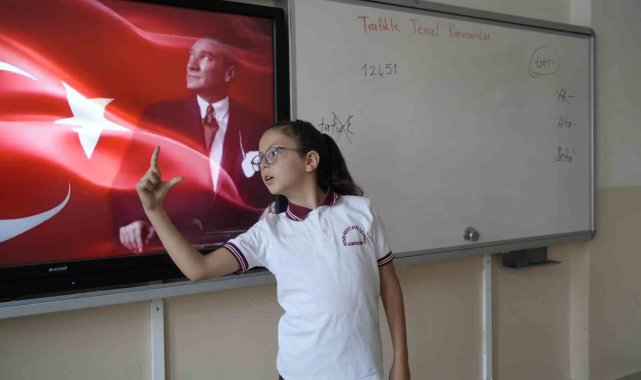 "Her pazartesi ve cuma bayrak törenlerinde İstiklal Marşı'nı işaret diliyle okuyor"