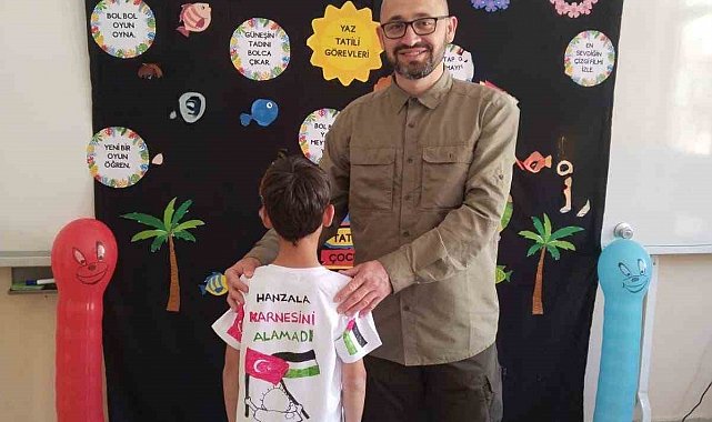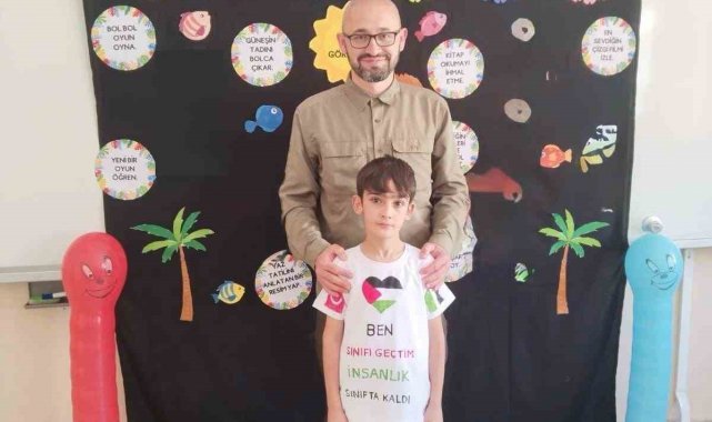 Ömer Tuğra'nın bu anlamlı hareketi çocukların dünyanın dört bir yanındaki acılara ne kadar duyarlı olabildiğinin çarpıcı bir göstergesi olurken, "Gazze'deki kardeşlerimin yaşadığı acıyı hissettim. Karne sevincimi paylaşırken onların acılarını unutmamak için bu tişörtü giydim. İnsanlık bu zulme sessiz kalmasın" ifadelerini kullandı.