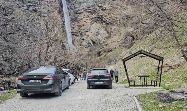 Bitlis'in Mutki ilçesinde bulunan Gümüşkanat Şelalesi, son günlerde doğaseverlerin akınına uğruyor.