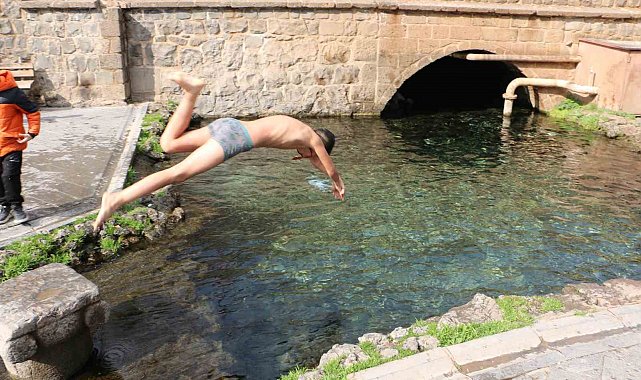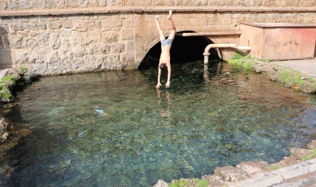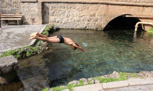 Diyarbakır'da etkili olan güneşli hava, özellikle çocuklar için beklenmedik bir eğlenceye dönüştü. Sur ilçesinde bulunan tarihi Anzele Parkı'nda bulunan süs havuzuna gelen çocuklar, soğuk havaya aldırış etmeden suda yüzdü. Hava sıcaklığının 7-8 derece civarında seyretmesine rağmen güneşi fırsata çeviren çocuklar, kış gününde yazı aratmayan görüntüler oluşturdu.