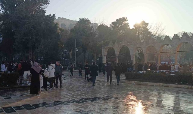 Şanlıurfa'da iki günlük kar yağışının ardından güneşli havayı fırsat bilen vatandaşlar Balıklıgöl'e akın etti.