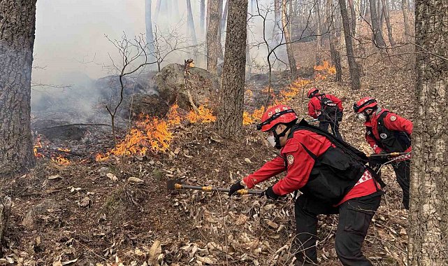 Güney Kore'de 3 gündür devam eden orman yangınında 190 hektarlık alan küle döndü