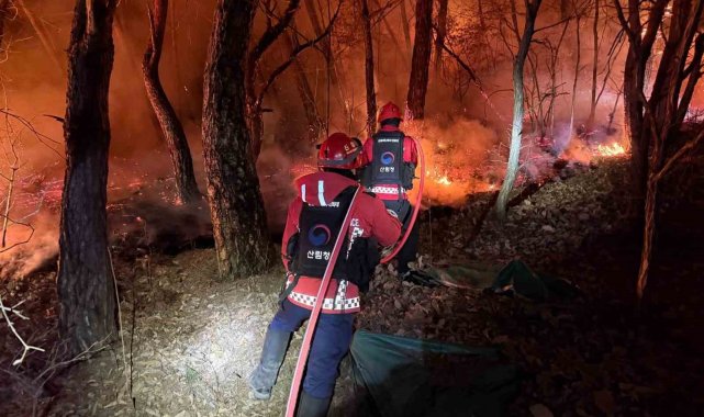 Güney Kore, bir kez daha orman yangınına teslim oldu. Kore Orman Servisi'nden (KFS) yapılan açıklamada, ülkenin Güney Gyeongsang eyaletindeki Miryang şehrinde dün yerel saatler 16.00 sıralarında orman yangını çıktığı bildirildi. Yangına 52 helikopter, 318 itfaiye aracı ve bin 511 personel ile müdahale edildiği aktarıldı. Yangın hasarının 100 hektarı aştığı ve yangının 48 saatten fazla sürmesinin öngörüldüğü durumlarda yayınlanan "2'nci seviye orman yangını müdahale emri" yayınladığı ifade edildi. Ayrıca yangının büyüklüğünün yerel yönetimin söndürme kapasitesini aştığı durumlarda devreye sokulan "Ulusal yangınla mücadele seferberliği emri" yayınlandığı kaydedildi.