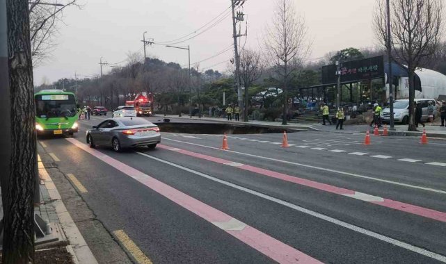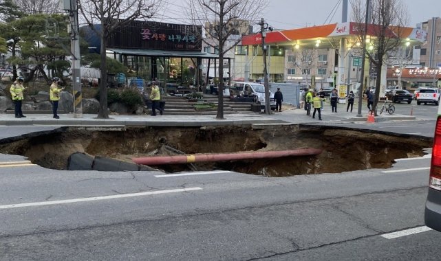 Güney Kore'deki bir otoyolda meydana gelen göçüğün ardından 20 metre çapında ve 30 metre derinliğinde dev çukur oluştu. Hareket halindeki bir motosiklet çukura düşerken, motosikletin sürücüsünü arama çalışmalarının sürdüğü bildirildi. Olayda bir otomobil sürücüsü de yaralandı.