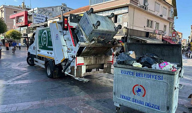 Düzce Belediyesi Temizlik İşleri Müdürlüğü, 63 mahallenin kent temizliği işi, evsel nitelikli katı atıkların çöp konteynerlerinden günlük olarak toplanması, taşınması ve iri hacimli atıklar ile tadilat ve moloz atıklarının kaldırılması çalışmalarını tüm hızıyla devam ettiriyor.