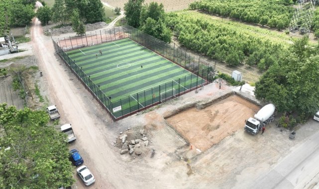 Gürsu Belediyesi Kumlukalan Köyü'ne yaptığı halı sahanın soyunma kabinl...