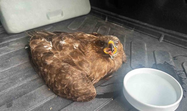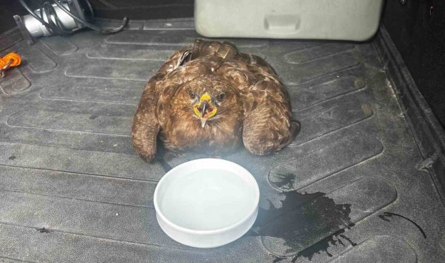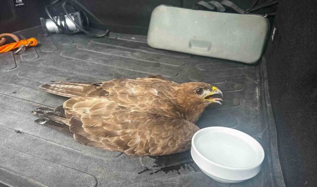Güvenlik görevlisinden yaralı kartala şefkat eli