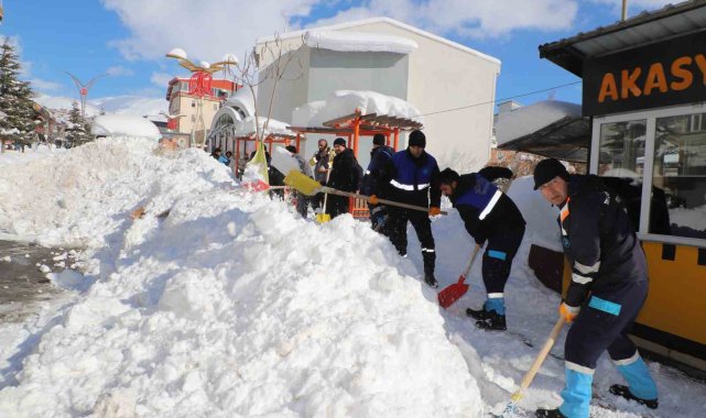 Kent genelinde yer yer 1,5 metreyi bulan kar kalınlığı nedeniyle araçlar adeta kara gömülürken, özellikle dar sokaklarda temizlik çalışmaları yoğunlaştırıldı. Güvenlik korucuları, ellerinde küreklerle belediye ekipleriyle birlikte iş makinelerinin giremediği alanlarda kar temizliği yaptı.