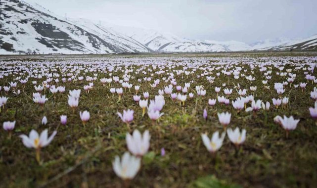 Bitlis'in Tatvan ilçesindeki Güzeldere Vadisi, açan çiğdem çiçekleriyle beyaz ve pembeye bürünerek güzel görüntüler oluşturuyor.