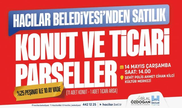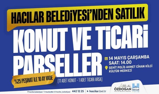 Başkan Özdoğan, arsalarla ilgili detaylı bilgi almak isteyen yatırımcıların www.hacilar.bel.tr internet adresini ziyaret edebileceğini belirterek, "Yatırım yapmak isteyen herkesi bu fırsattan yararlanmaya davet ediyorum. Satışa sunulan arsalar hem ilçemize değer katacak hem de yatırımcılar için kârlı bir fırsat sunacak. Şimdiden ilçemize ve hemşehrilerimize hayırlı olmasını diliyorum" ifadelerini kullandı.