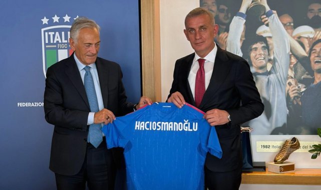 Hacıosmanoğlu, İtalya Futbol Federasyonu Başkanı Gravina'yı ziyaret etti