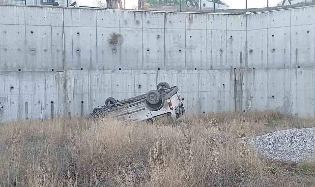 Çorum'da yoldan hafif ticari araç yaklaşık 8 metrelik istinat duvarından aşağı düştü. Kazada sürücü ağır yaralandı.