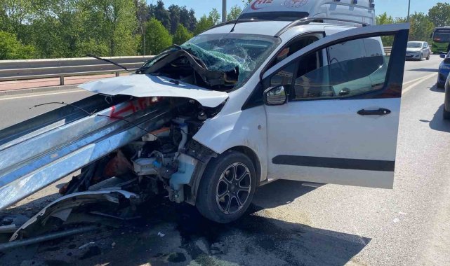 Kocaeli'nin Kartepe ilçesinde kontrolden çıkan hafif ticari aracın bariyere çarpması sonucu meydana gelen kazada sürücü yaralandı.