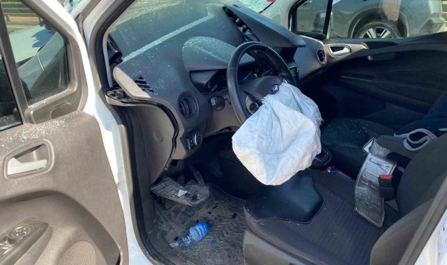 Hafif ticari araç bariyere saplandı