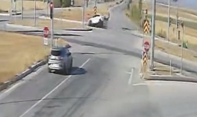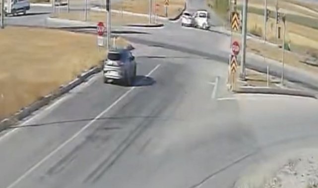 Öte yandan, kaza anı güvenlik kamerasına yansıdı. Görüntülerde, aynı anda kavşağa giren iki aracın çarpıştığı ve savruldukları anlar yer aldı.