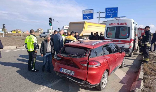 Tekirdağ'ın Saray ilçesinde hafif ticari araç ile otomobilin çarpışması sonucu 2'si çocuk 3 kişi hafif yaralandı.