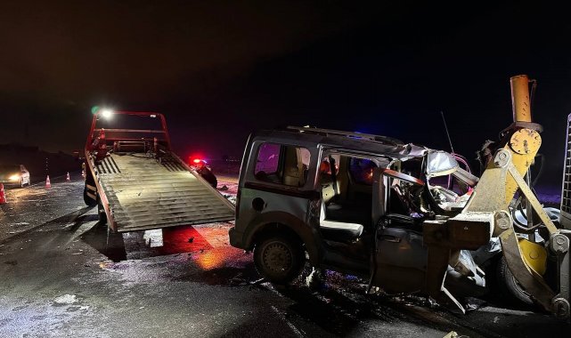 Hafif ticari araç iş makinesine çarptı: 1'i ağır 2 yaralı