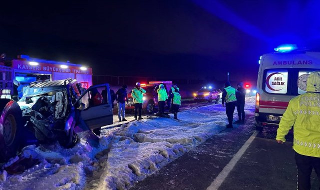 Kayseri-Malatya yolunda hafif ticari aracın iş makinesine çarptığı kazada 1'i ağır 2 kişi yaralandı.