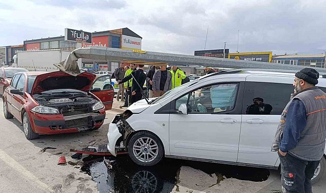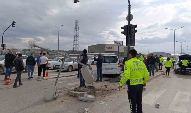 Bursa'nın İnegöl ilçesinde hafif ticari araç kırmızı ışıkta bekleyen otomobile çarpıştı. Kaza da ortalık savaş alanına döndü. Aydınlatma direğinin devrildiği kazada 1 kişi yaralandı.