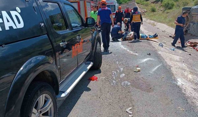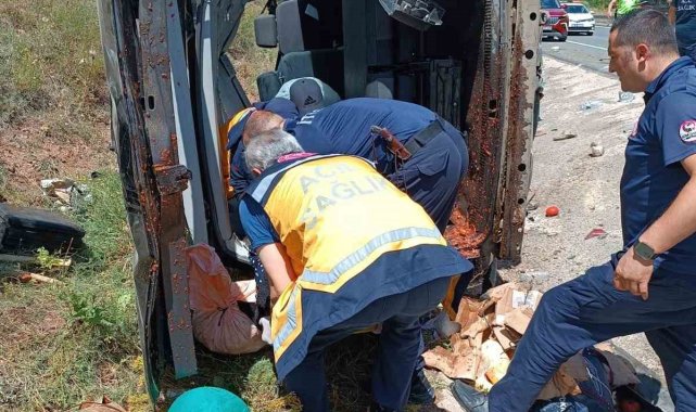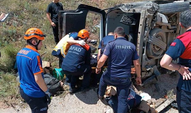 Hafif ticari araç menfeze çarpıp takla attı: 3 yaralı