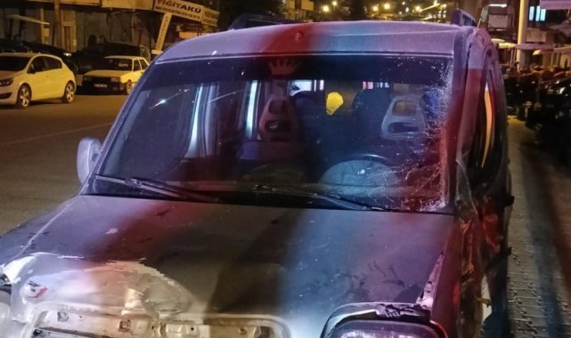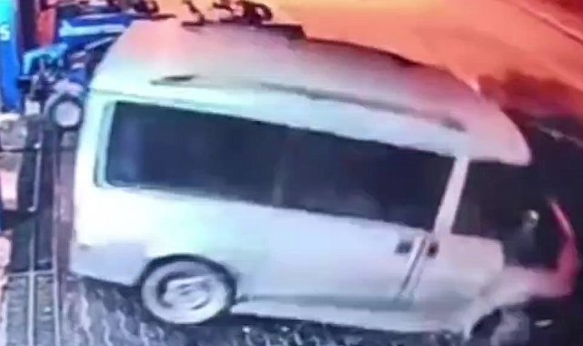 Hatay'da sürücüsünün direksiyon hakimiyetini kaybettiği hafif ticari aracın park halindeki patpata ve minibüse çarptığı anlar kameraya yansıdı.