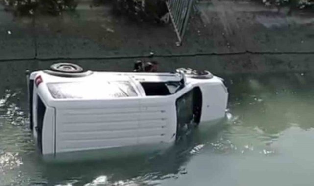 Hafif ticari araç sulama kanalına uçtu: O anlar kamerada