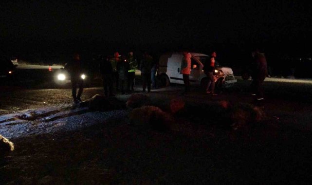Malatya'da hafif ticari aracın küçükbaş hayvan sürüsüne çarptığı kazada sürücü yaralanırken, 10'dan fazla koyun telef oldu.