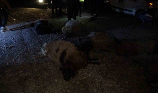 Hafif ticari araç sürüye daldı, 10'dan fazla koyun telef oldu