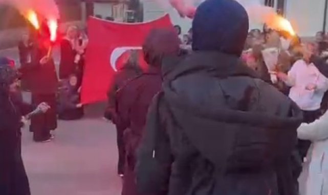 Hafızlık sınavını tamamlayan genç kızlar meşaleler, alkışlar ve Türk bayraklarıyla karşılandı