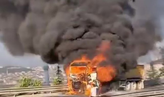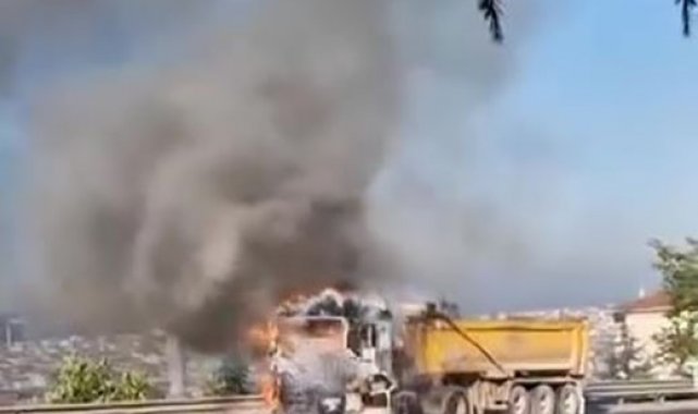Gebze ilçesinde sürücüsü ve plakası öğrenilemeyen hafriyat kamyonu, seyir halindeyken alev aldı. Durumu fark eden sürücü hemen aracı durdurarak kamyondan indi. Kısa sürede yangın büyürken, siyah dumanlar gökyüzünü kapladı. İhbar üzerine olay yerine itfaiye ekipleri sevk edildi. Olay yerine gelen ekipler, yangını söndürmek için çalışma başlattı. İtfaiyenin çalışmaları sırasında patlamalar da meydana geldi. Yangın söndürülürken, araç kullanılamaz hale geldi. Polis olayla ilgili inceleme başlattı.