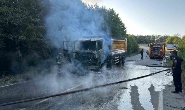 Olay, saat 18.00 sıralarında Kutluca Mahallesi Eski İstanbul Yolu'nda meydana geldi. Edinilen bilgilere göre, seyir halindeki hafriyat kamyonunda henüz bilinmeyen bir nedenle yangın çıktı. Dumanları fark eden sürücü aracı durdurarak dışarı çıktı. Kısa sürede büyüyen alevler yol kenarındaki otluk alana da sıçradı.