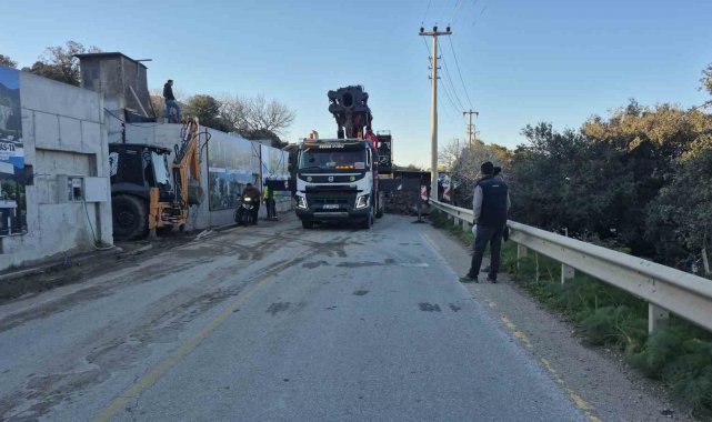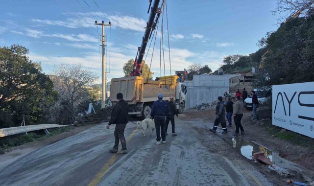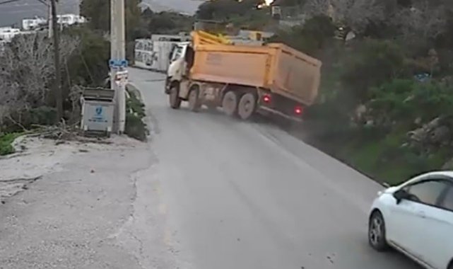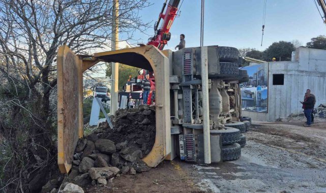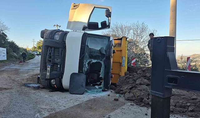 Muğla'nın Bodrum ilçesinde yol kenarındaki çukura giren hafriyat kamyonu devrilirken, yolun trafiğe kapandığı kazada 1 kişi yaralandı.