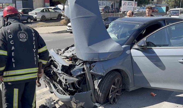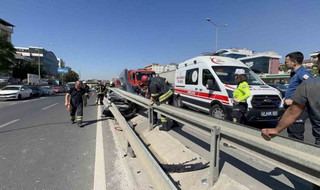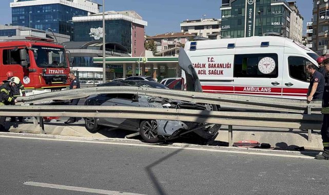 Kocaeli'nin Gebze ilçesinde seyir halindeki otomobil, hafriyat kamyonu ile çarpıştıktan sonra demir bariyerlerin altına girdi. Otomobil hurdaya dönerken, 2 kişi yaralandı.