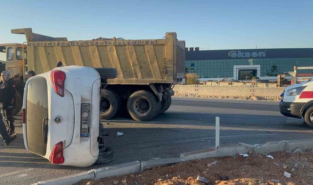 Gaziantep'in Nizip ilçesinde hafriyat kamyonu ile çarpışan otomobilin yan yatması sonucu 1 kişi yaralandı.