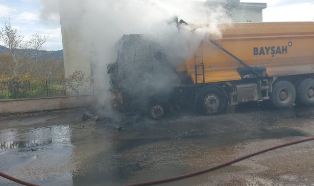 Olay, Bursa'nın Mustafakemalpaşa ilçesi Devecikonak Mahallesi'nde meydana geldi. Edinilen bilgiye göre, Taş Mektep yakınlarında hafriyat kamyonundan dumanlar çıktığı fark eden sürücü, araçtan inip canını kurtardı. Biranda alev topuna dönen kamyon, Orman İşletme Müdürlüğü'ne bağlı ekipler tarafından söndürüldü.