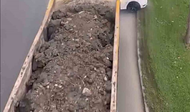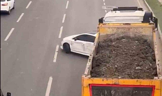 Hafriyat kamyonu, önüne aldığı otomobili 100 metre sürükledi
